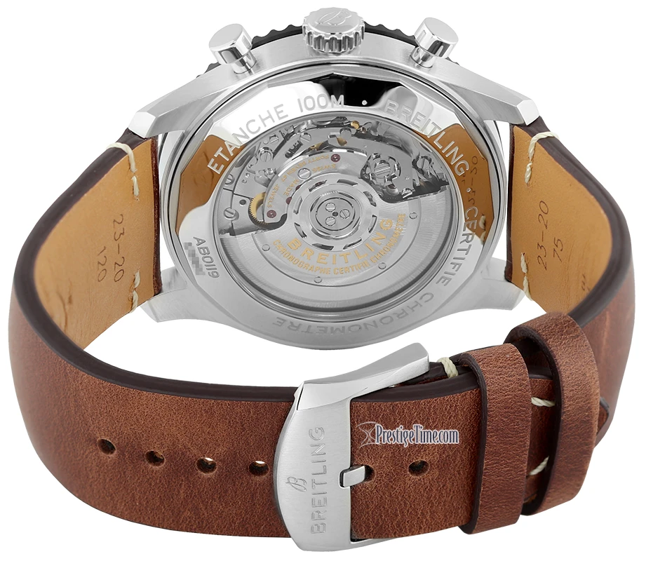 - Breitling in-house caliber B01, beats at 28,800 vph, contains 47 jewels & has a minimum power reserve of 70 hours.
