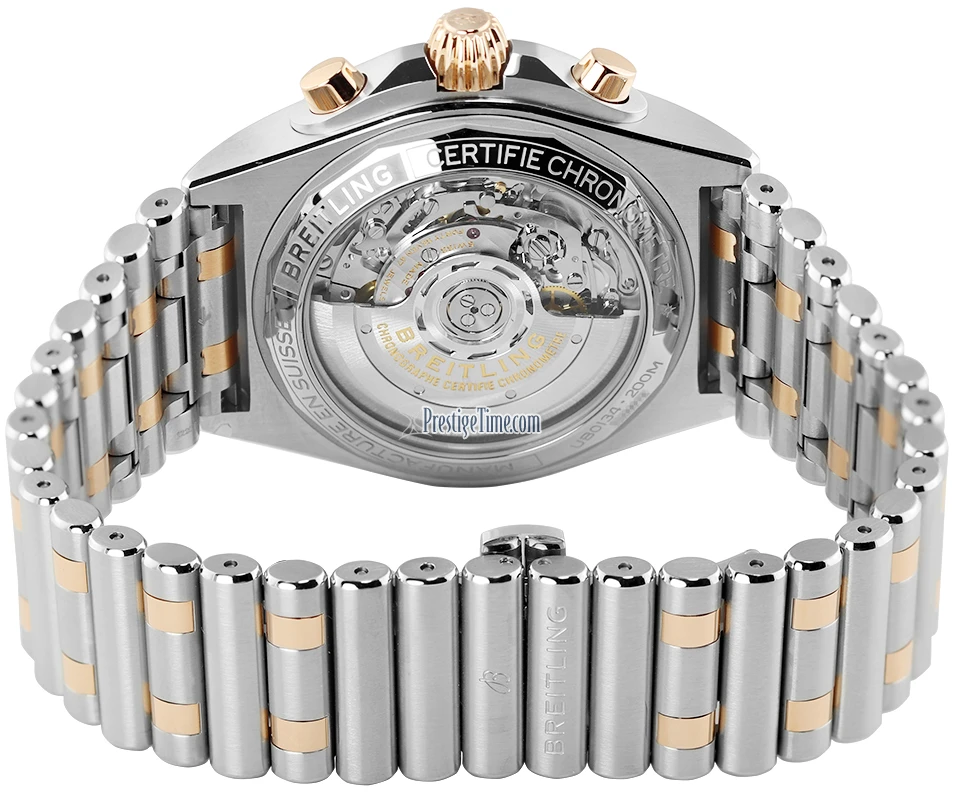 - Breitling caliber B 01, beats at 28’800 vph, contains 47 jewels & has an approximate power reserve of 70 hours.