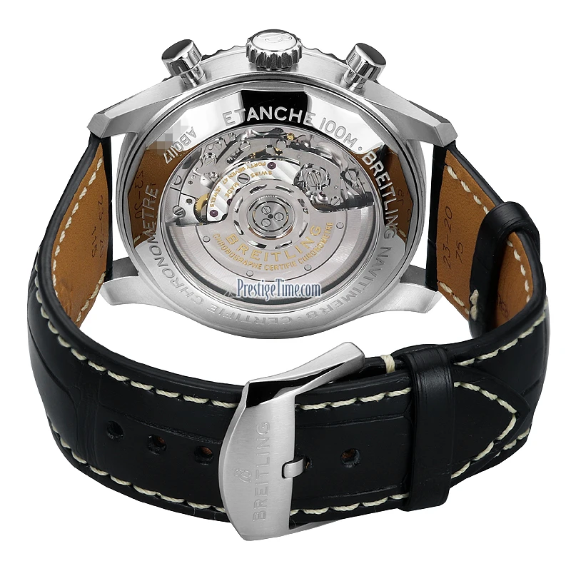 - Breitling in-house caliber B01, beats at 28,800 vph, contains 47 jewels & has a minimum power reserve of 70 hours.