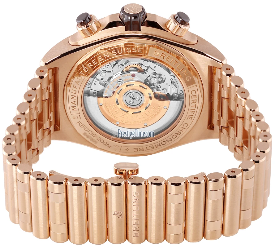 - Breitling caliber B 01, beats at 28’800 vph, contains 47 jewels & has an approximate power reserve of 70 hours.