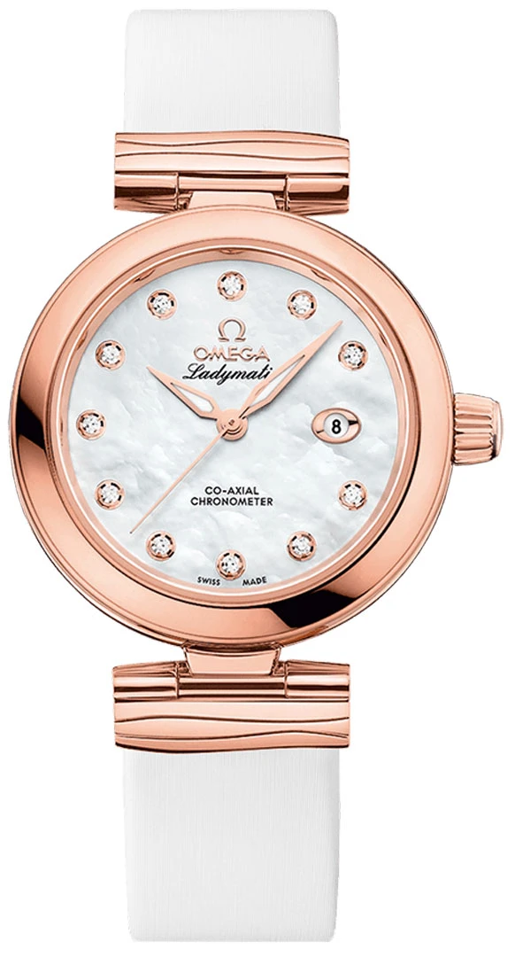 - White mother of pearl dial.