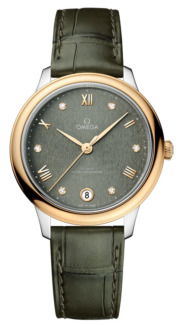 - Matcha green dial with a fine vertical pattern finish.