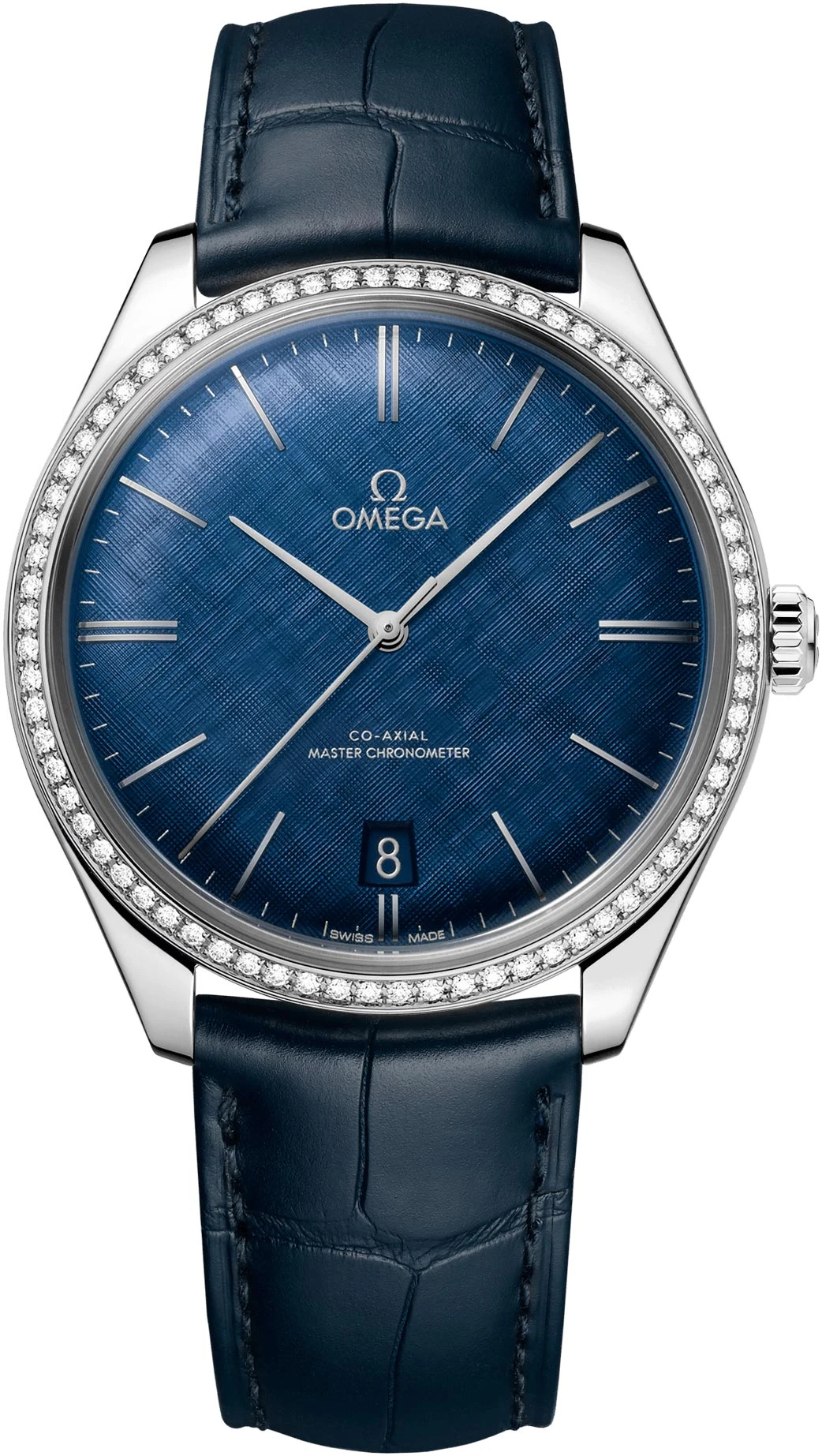 - Domed blue textured dial.