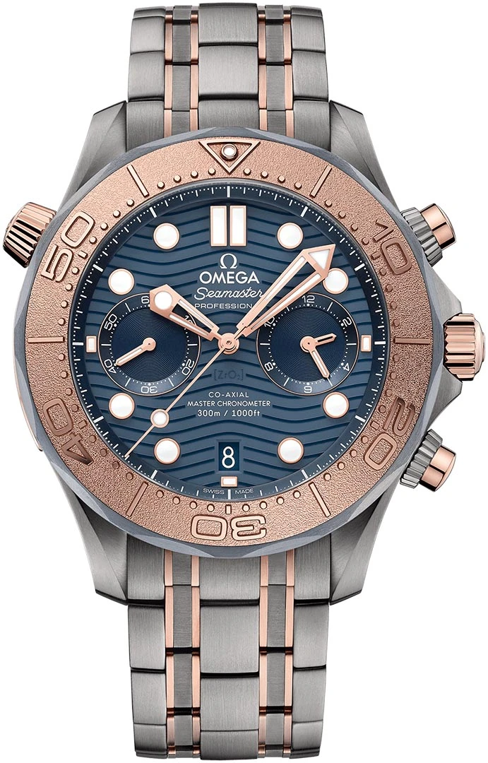 Special consecutive numbered edition (not limited) model constructed from grade 2 titanium, Omega’s proprietary 18kt Sednaâ„¢ gold and tantalum. Special features:
