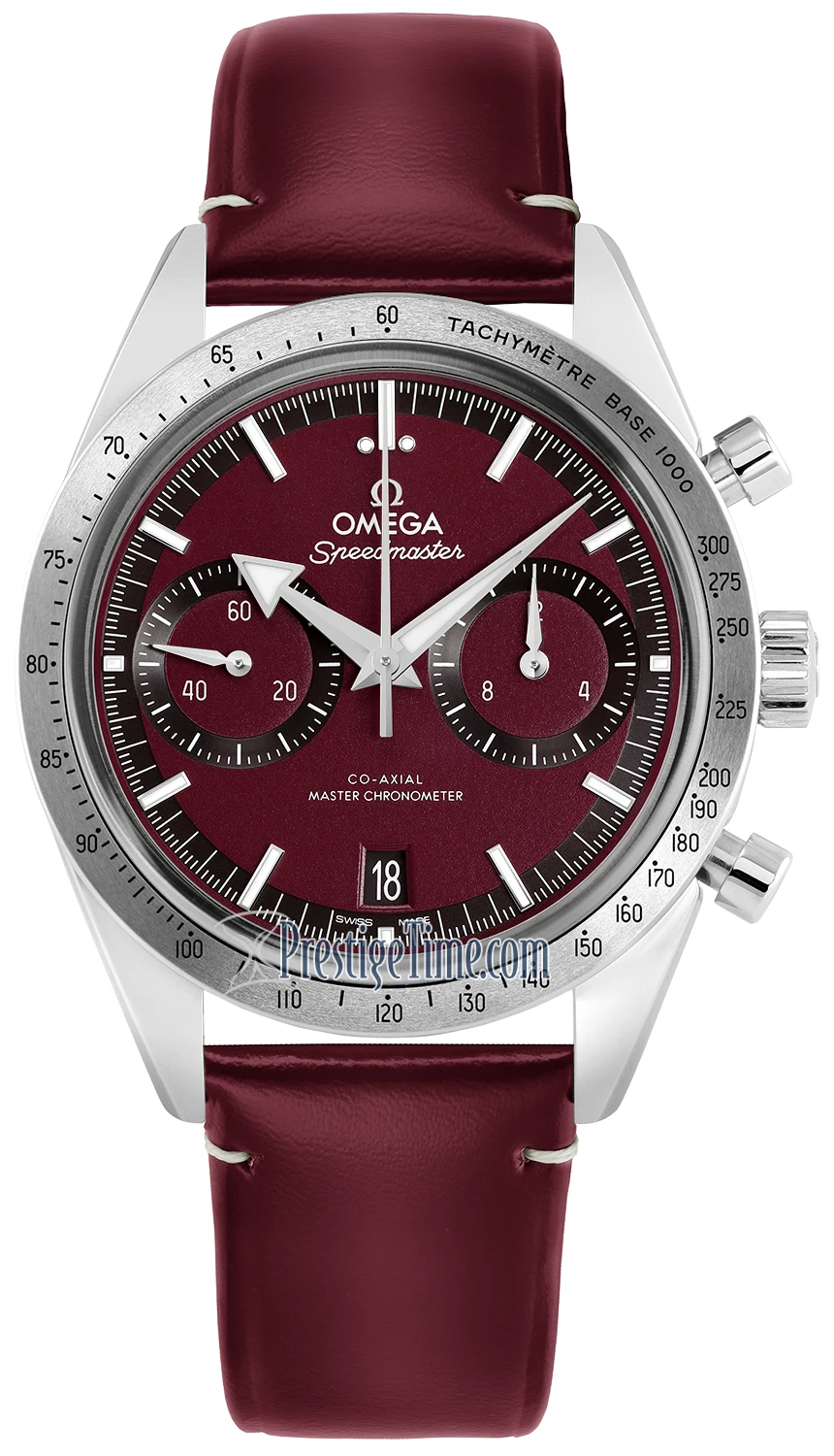 - Burgundy dial with a fine sunray finish.