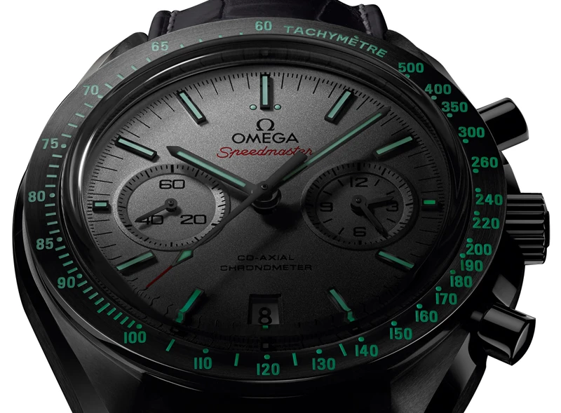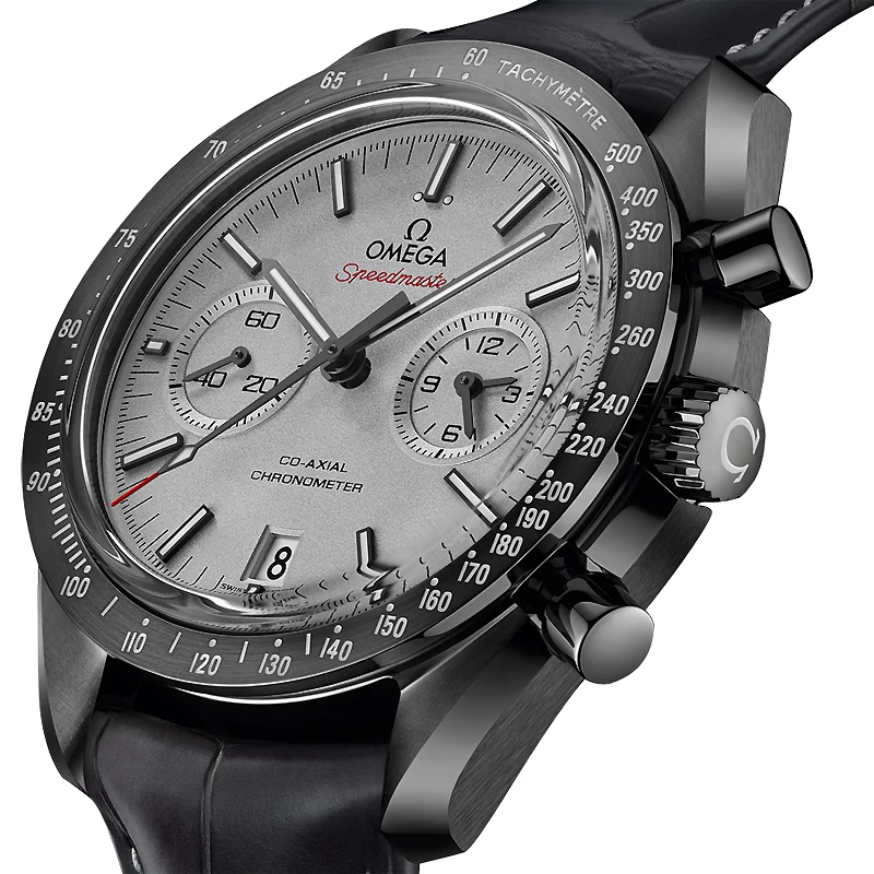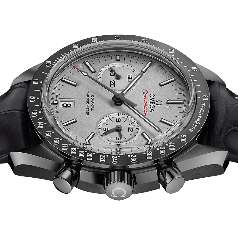 - Polished grey ceramic bezel with an engraved tachymeter scale with white Super-Luminova fill.