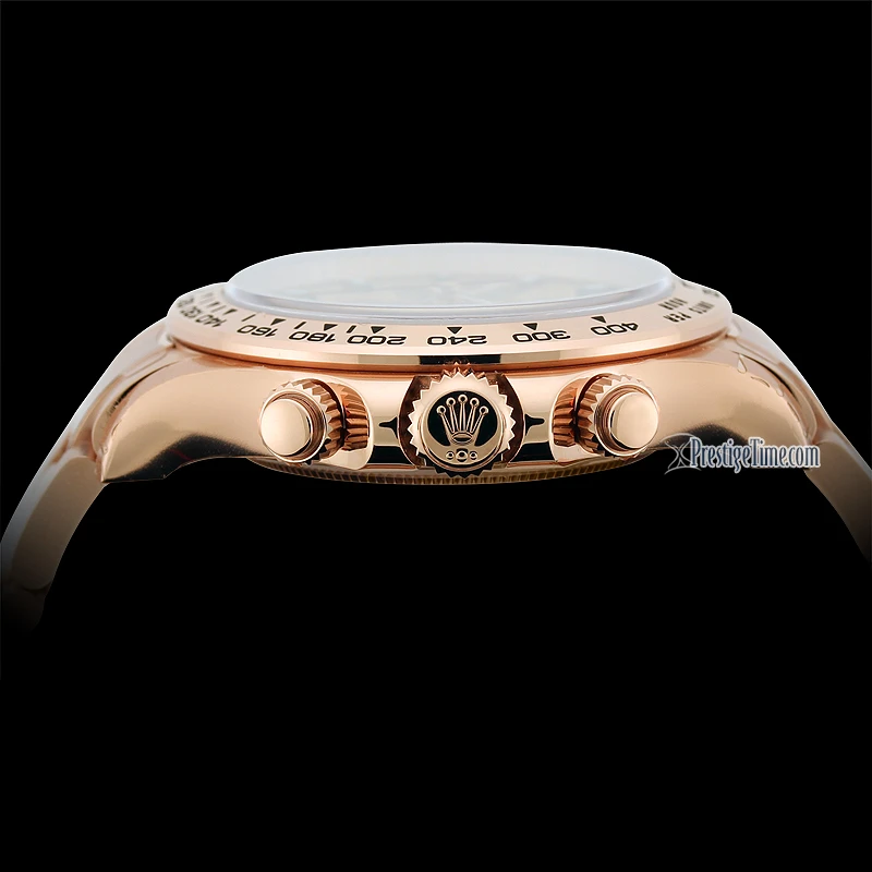 - Polished 18kt Everose gold screw-down locking crown & chronograph buttons.