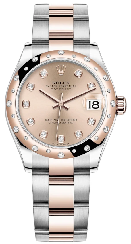 - Polished 18kt Everose gold domed bezel set with 24 diamonds.