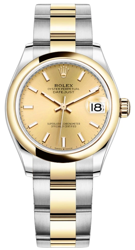 - Date window displayed at the 3 o’clock position with a cyclops magnifying lens.