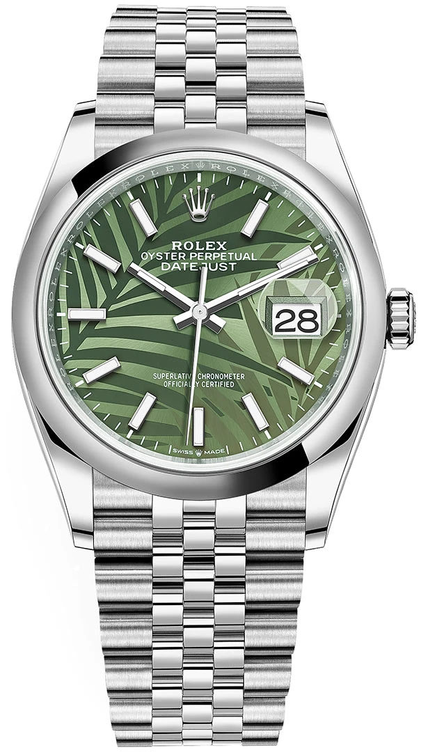 - Date window displayed at 3 o’clock with a cyclops magnifying lens.