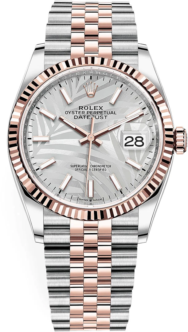 - Date window displayed at the 3 o’clock position with a cyclops magnifying lens.