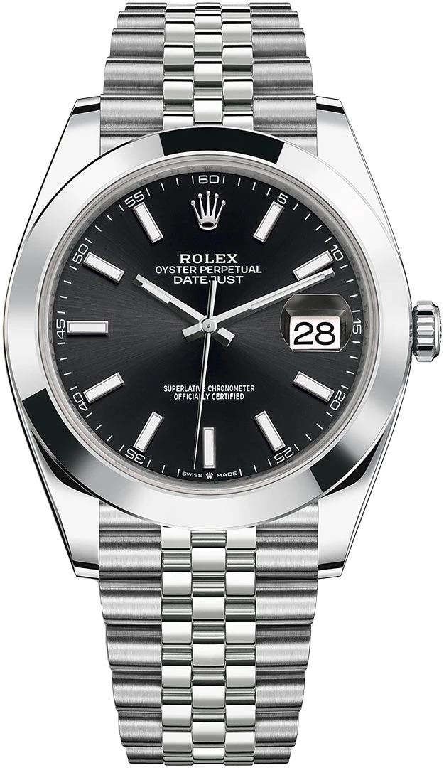 - Date window displayed at the 3 o’clock position with a “cyclops” magnifying lens.
