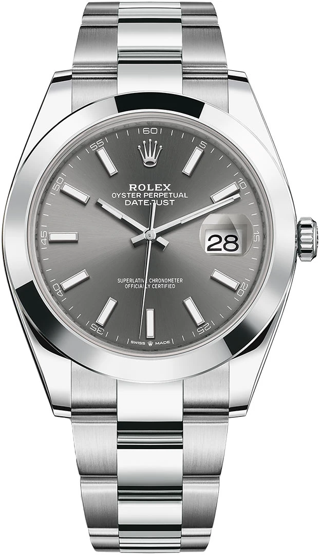 - Date window displayed at the 3 o’clock position with a “cyclops” magnifying lens.