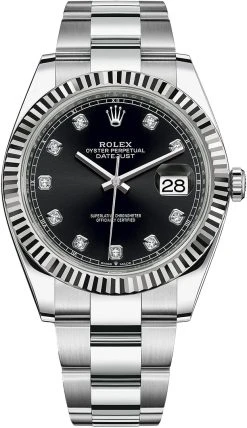 - Date window displayed at the 3 o’clock position with a “cyclops” magnifying lens.