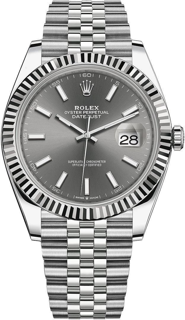 - Grey “dark rhodium” dial.