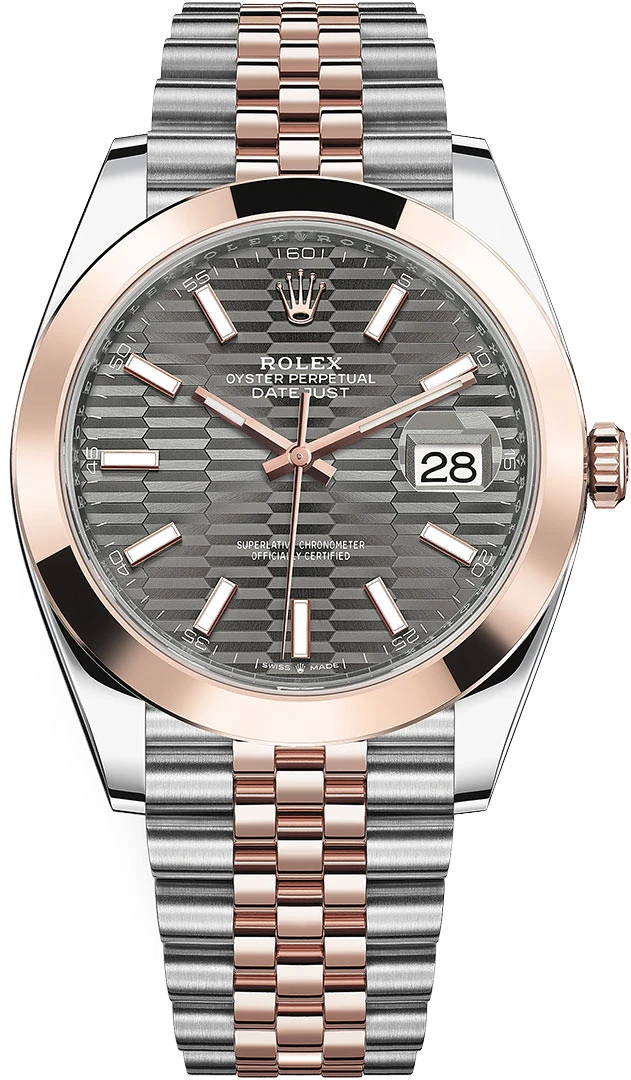 - Slate grey dial with fluted motif.