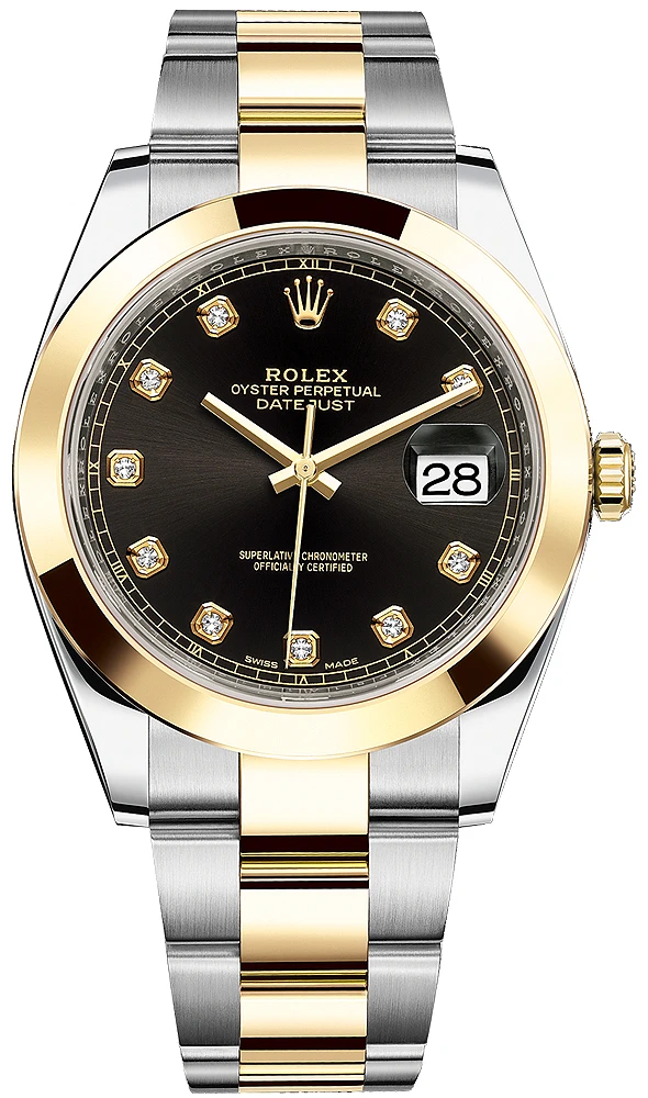 - Date window displayed at the 3 o’clock position with a “cyclops” magnifying lens.