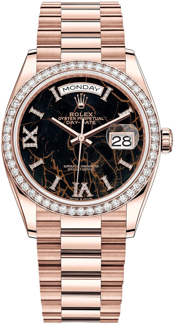 - Applied 18kt Everosegold hour markers pave set with diamonds.