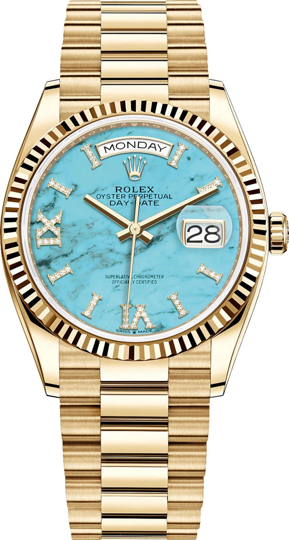 - Applied 18kt yellow gold hour markers pave set with diamonds.