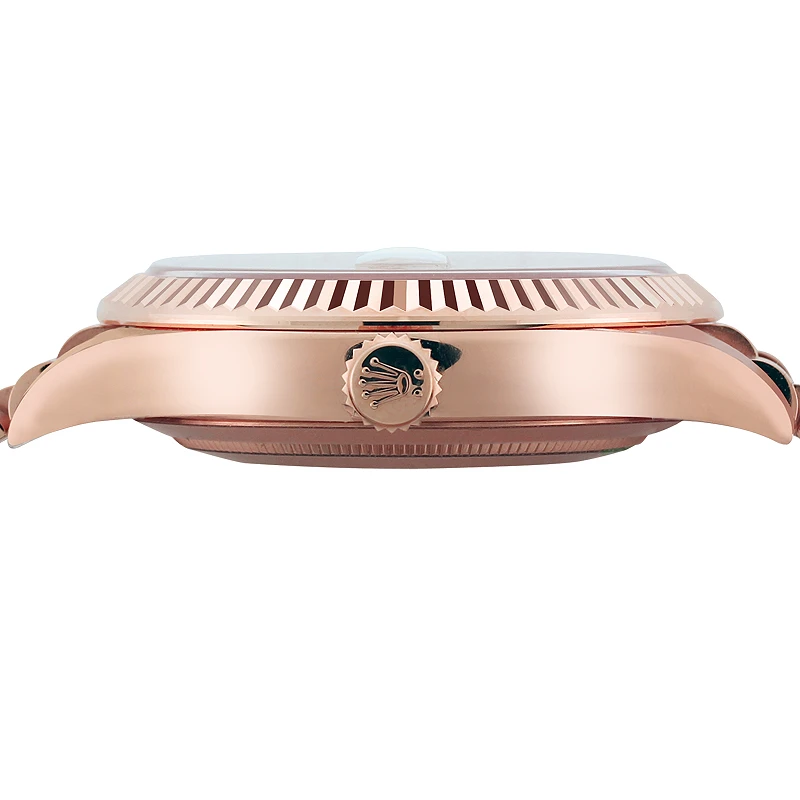 - Polished 18kt everose gold fluted (wave design) bezel.