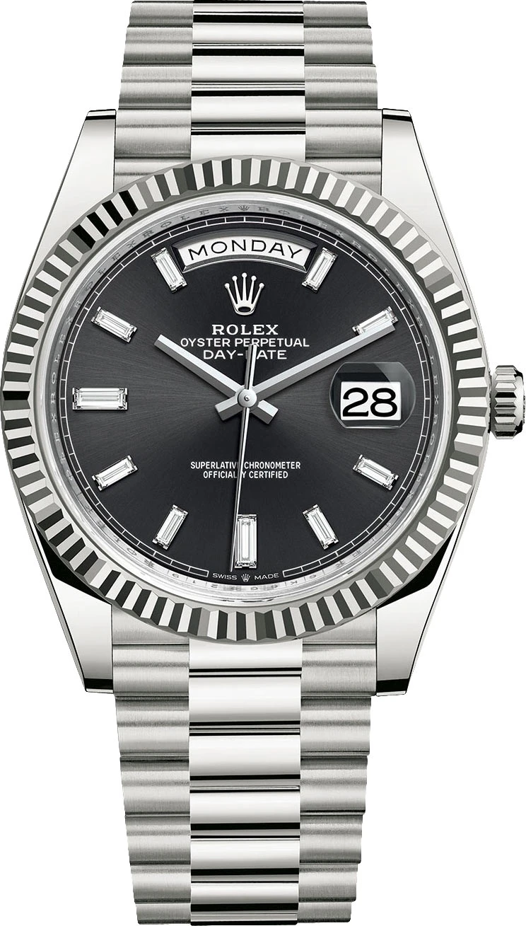 - 10 baguette diamond hour markers.