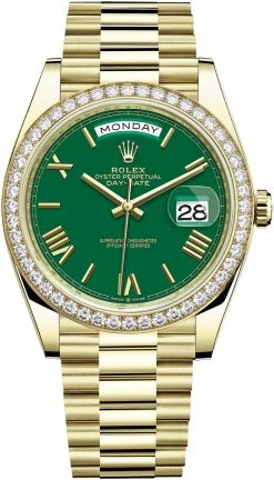 - Polished 18kt yellow gold bezel, factory set with 48 diamonds.