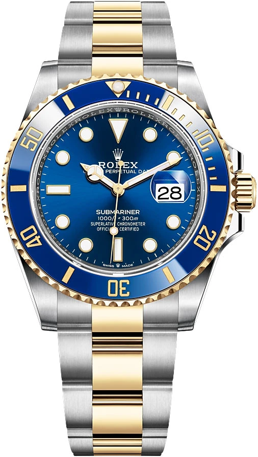 - Blue cerachrom bezel insert.