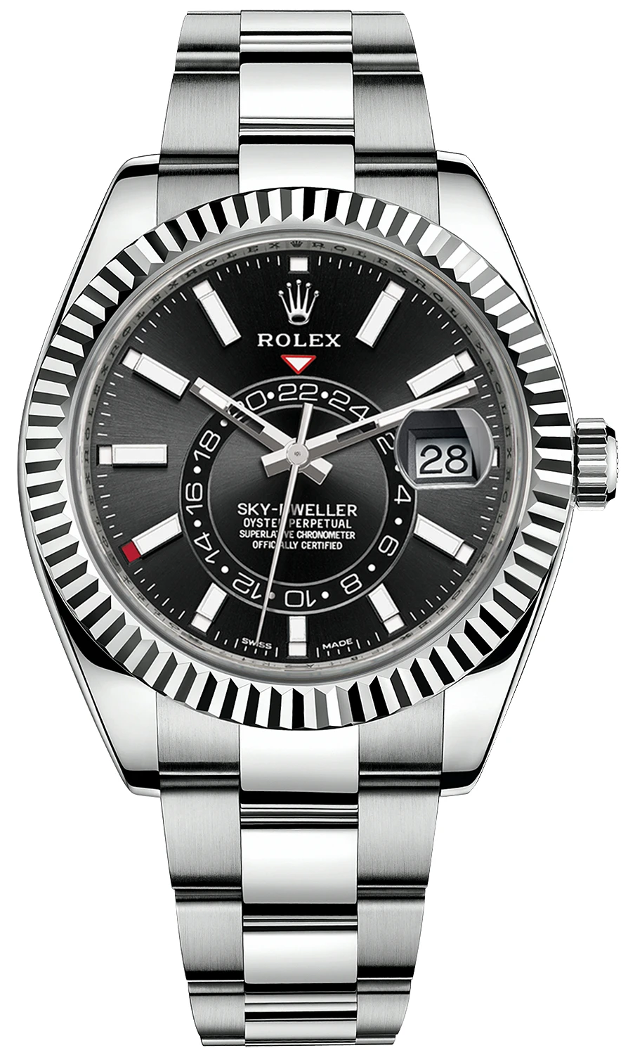 - Partially skeletonized minute & hour hands so not to obscure the dual time
