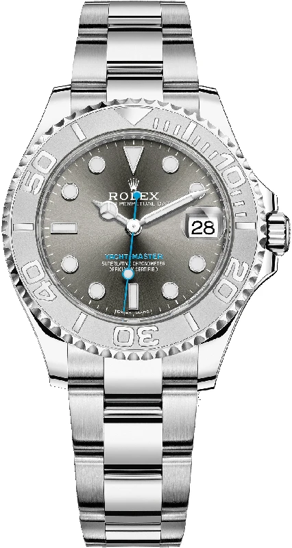 - Patented “Triplock” locking crown crown ensuring that the crown screws down against the Oyster case as securely as a submarine hatch.